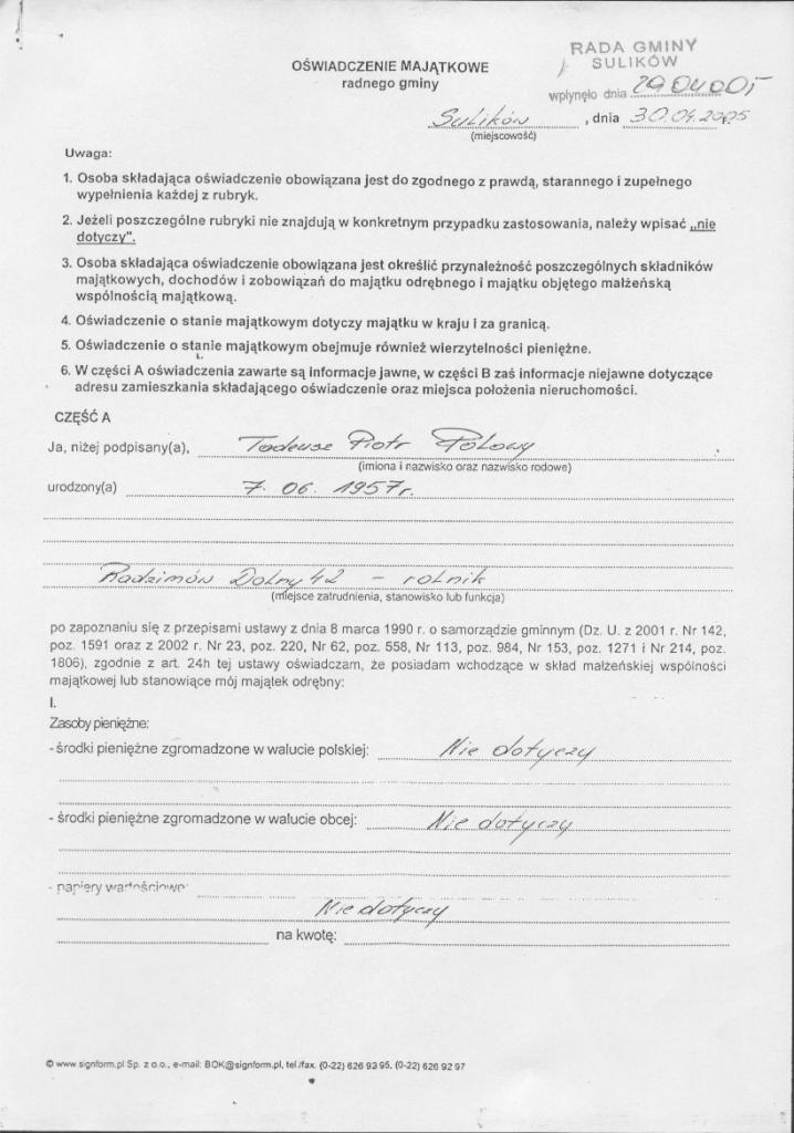 | Skrócony opis: | OŚWIADCZENIE MAJĄTKOWE RADNEGO GMINY SULIKÓW |