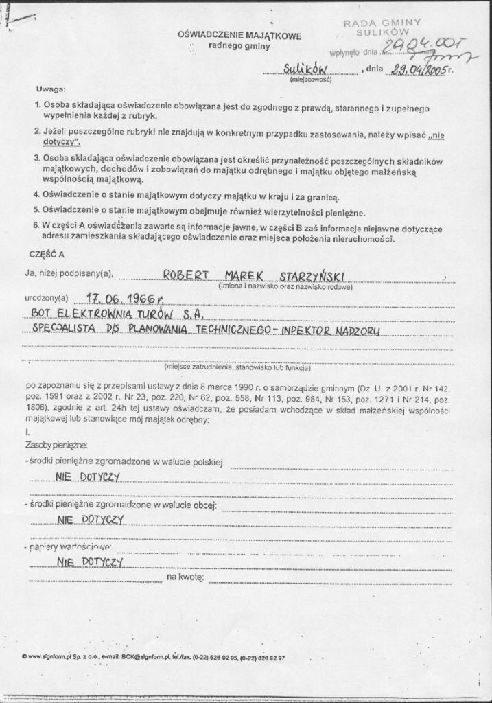 | Skrócony opis: | OŚWIADCZENIE MAJĄTKOWE RADNEGO GMINY SULIKÓW |