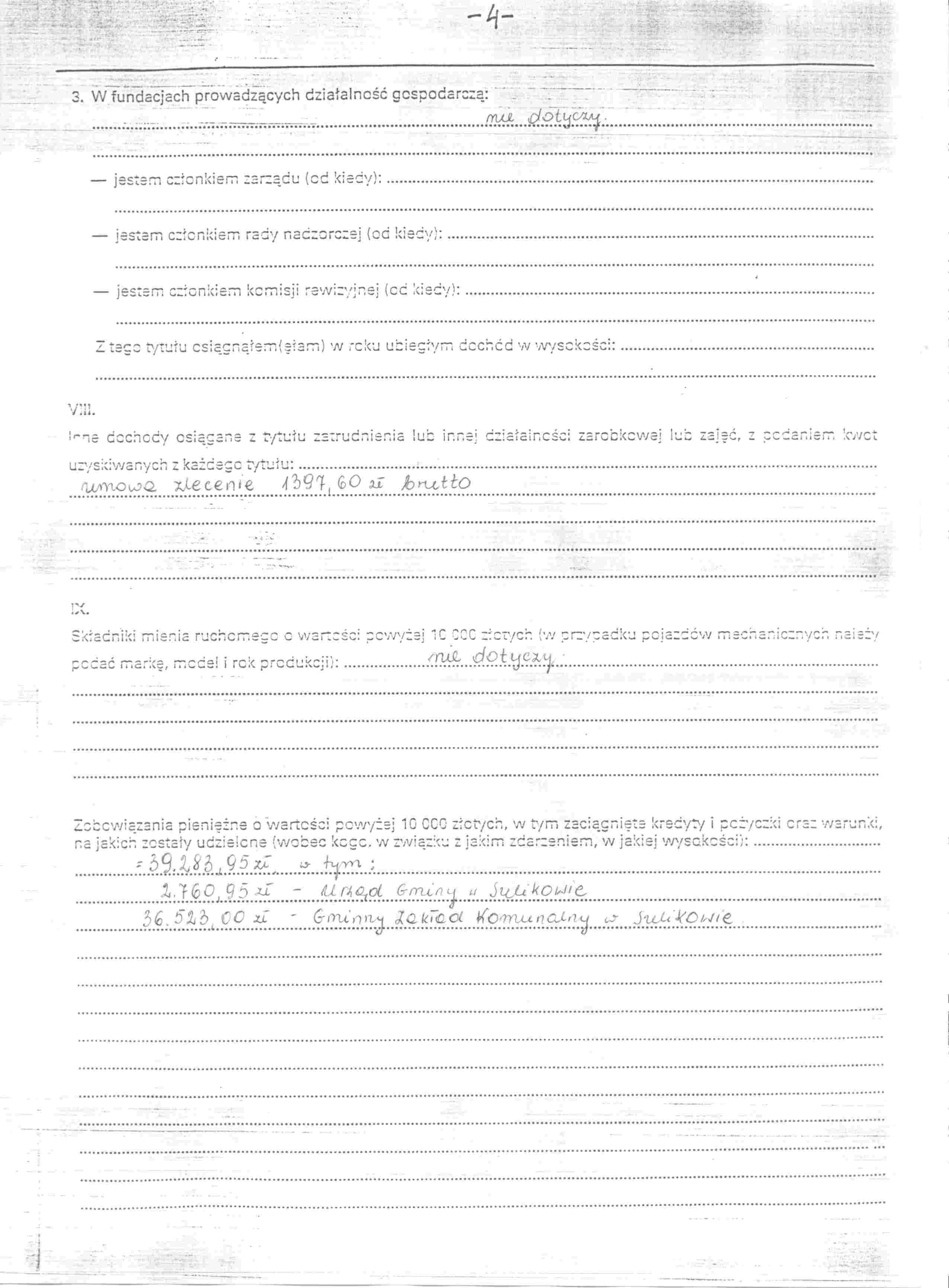 Skrócony opis: OŚWIADCZENIE MAJĄTKOWE DYREKTORA GMINNEGO OŚRODKA KULTURY W SULIKOWIE