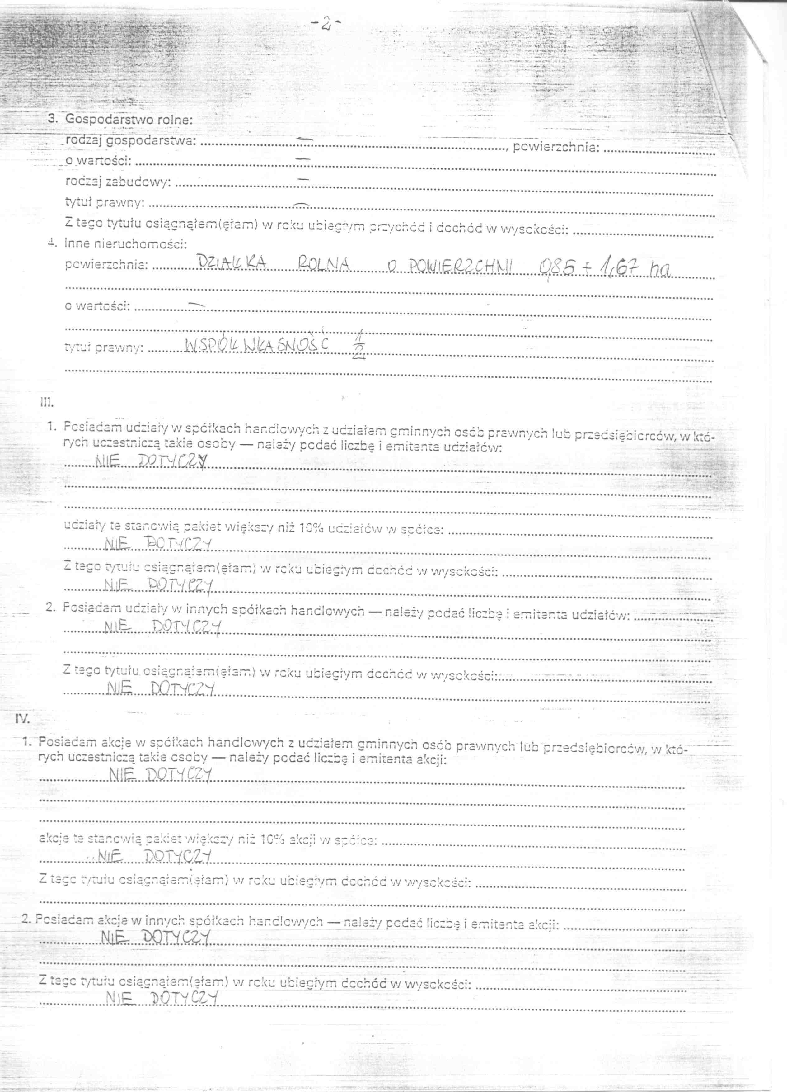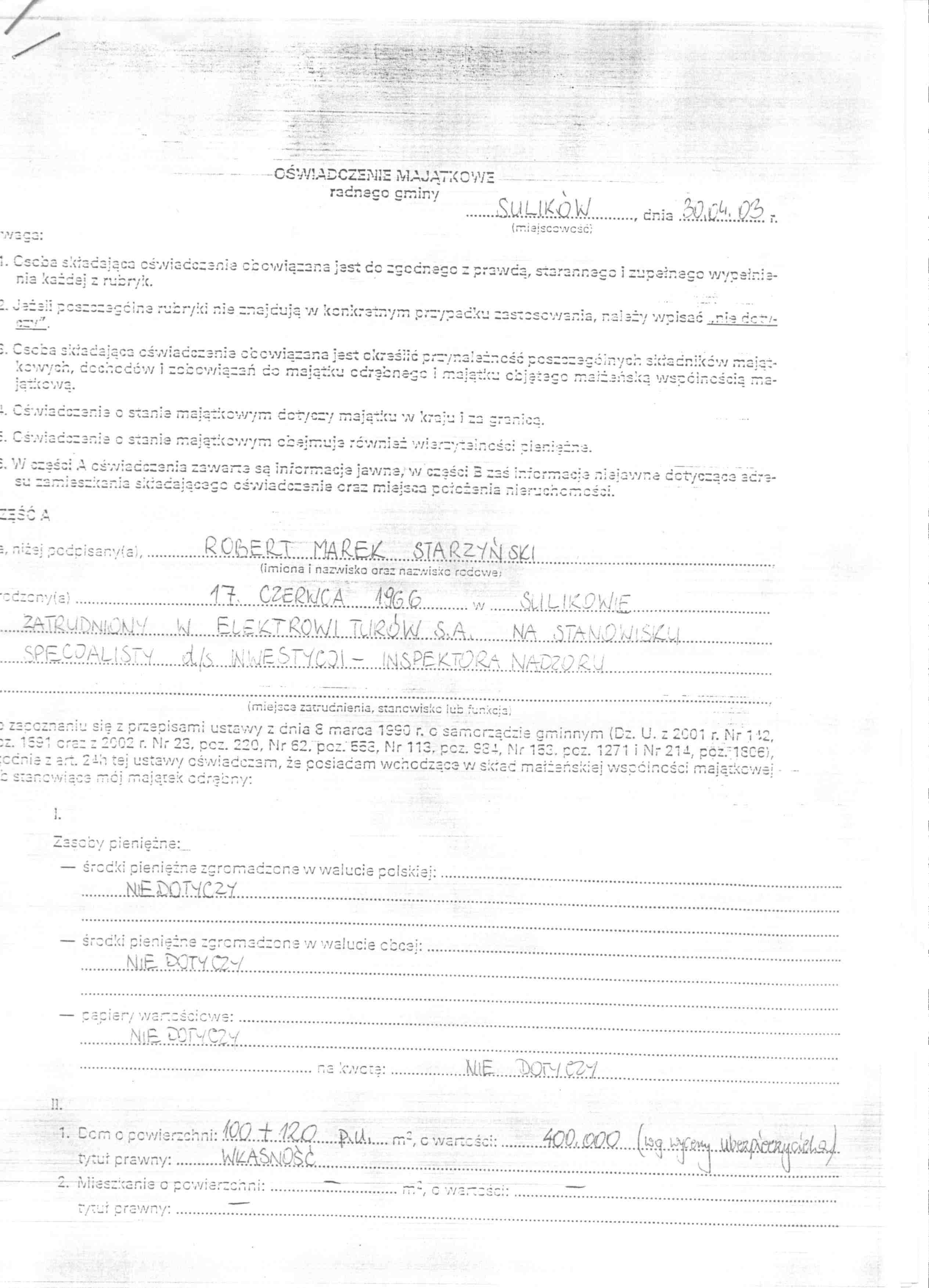 | Skrócony opis: | OŚWIADCZENIE MAJĄTKOWE RADNEGO GMINY SULIKÓW |