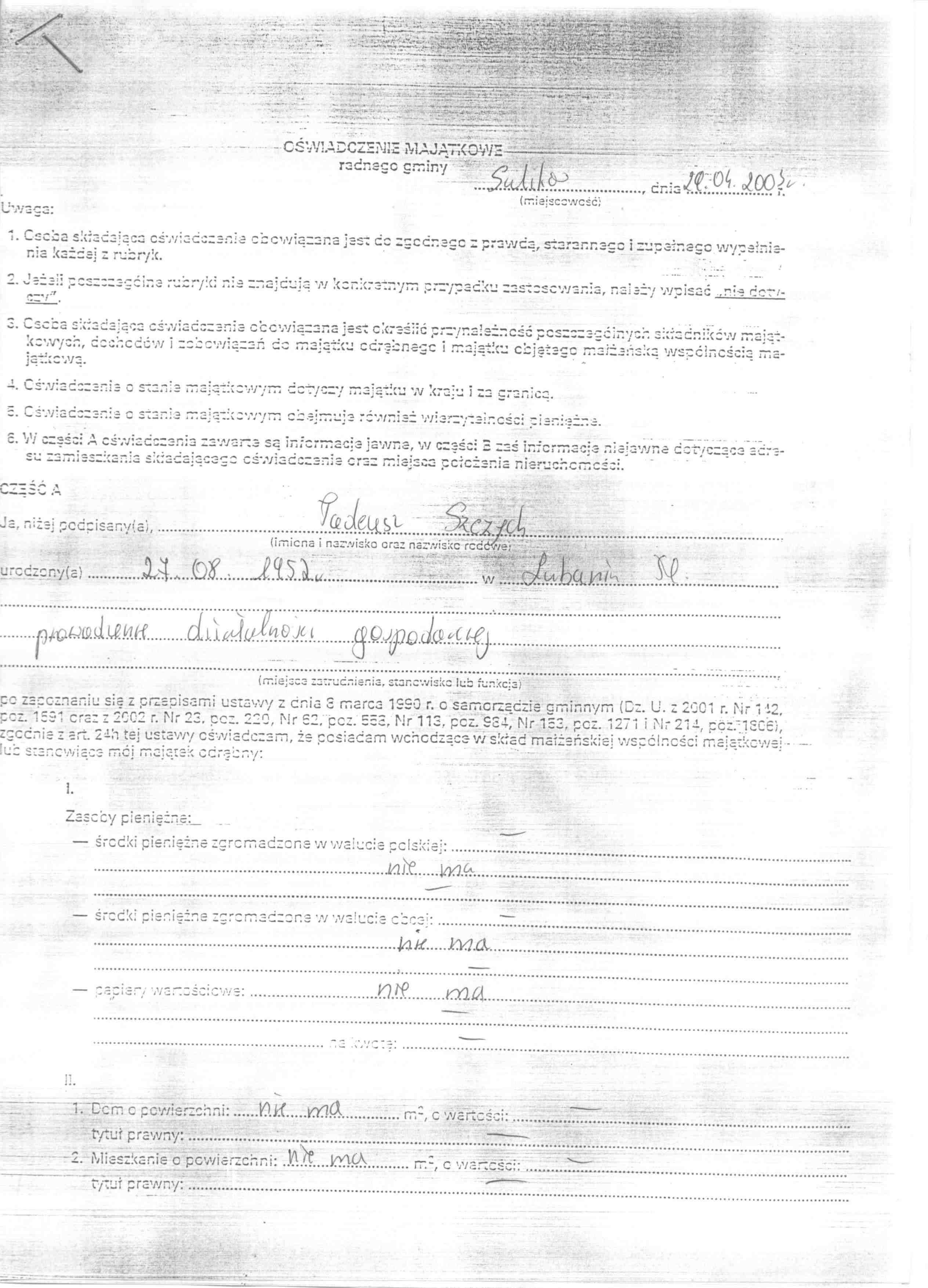 | Skrócony opis: | OŚWIADCZENIE MAJĄTKOWE RADNEGO GMINY SULIKÓW |