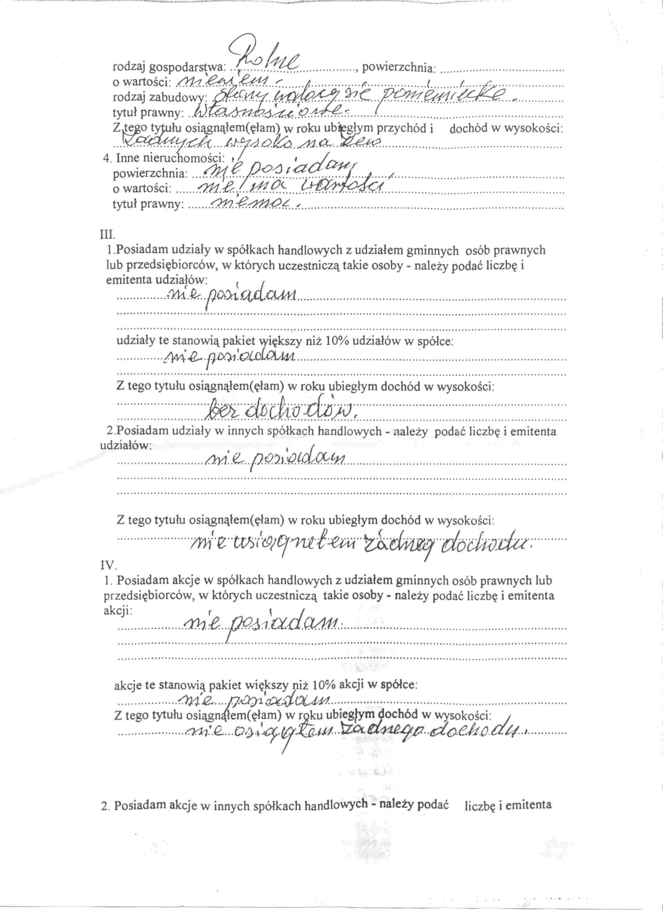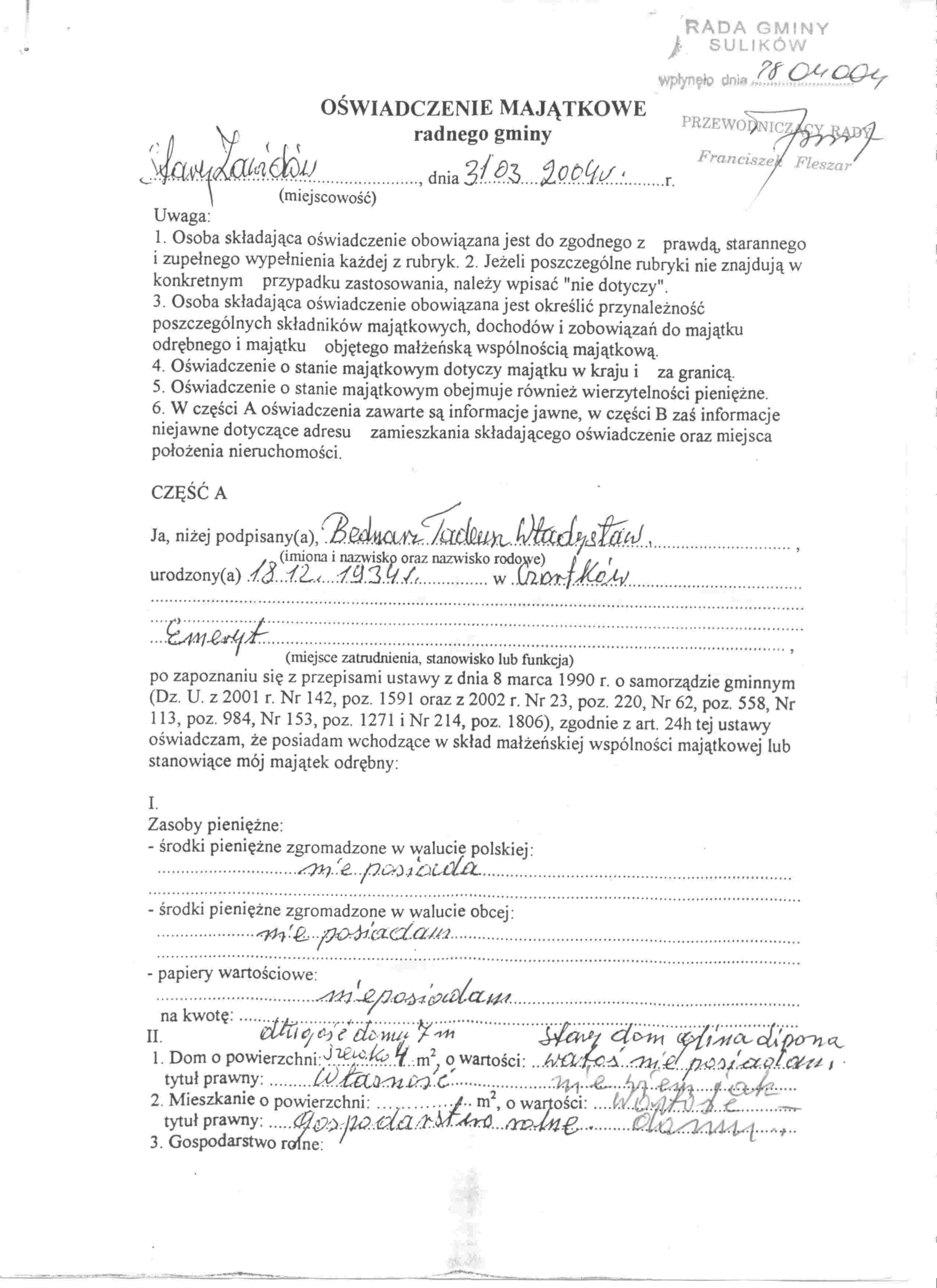 | Skrócony opis: | OŚWIADCZENIE MAJĄTKOWE RADNEGO GMINY SULIKÓW |