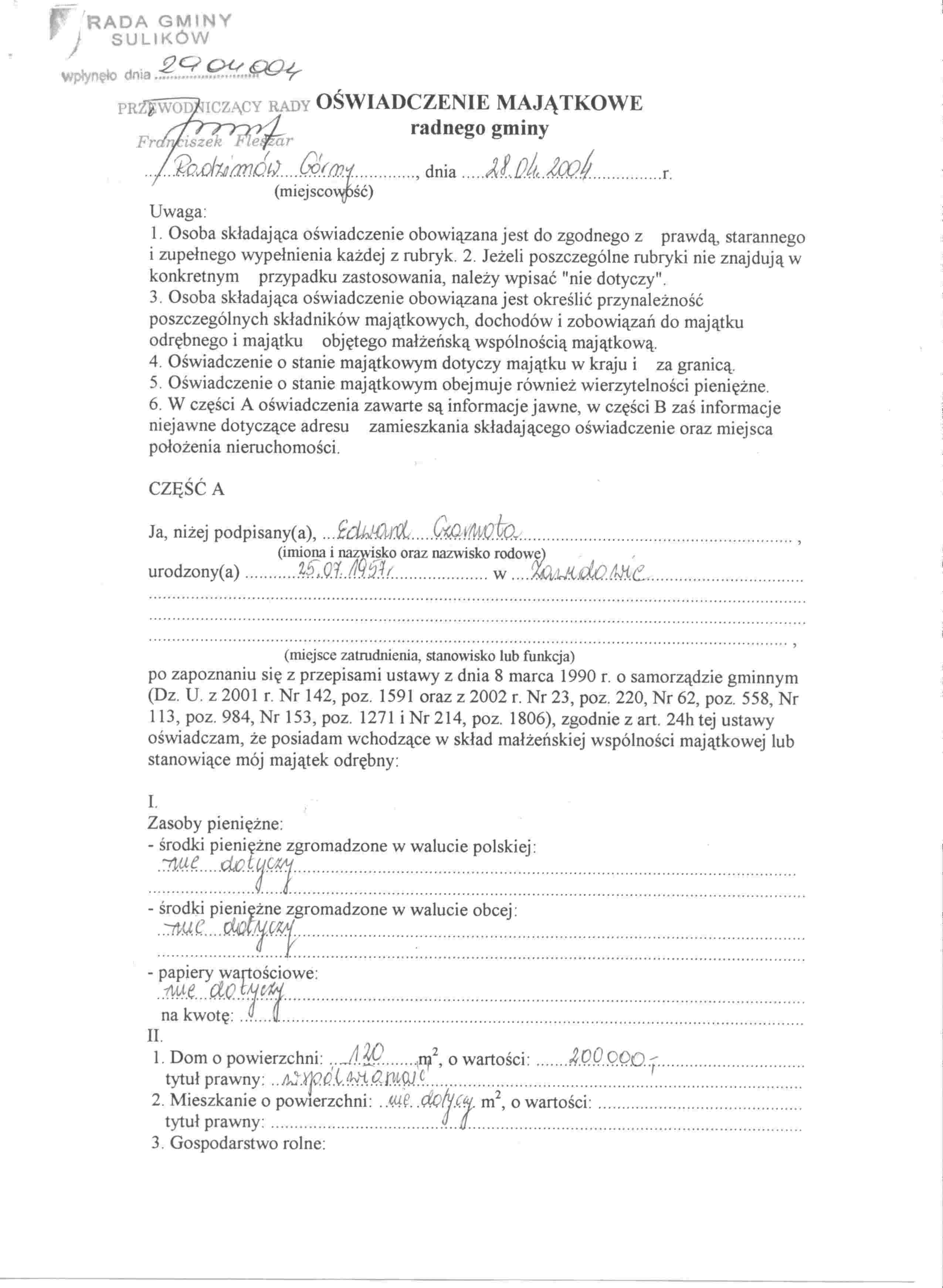 | Skrócony opis: | OŚWIADCZENIE MAJĄTKOWE RADNEGO GMINY SULIKÓW