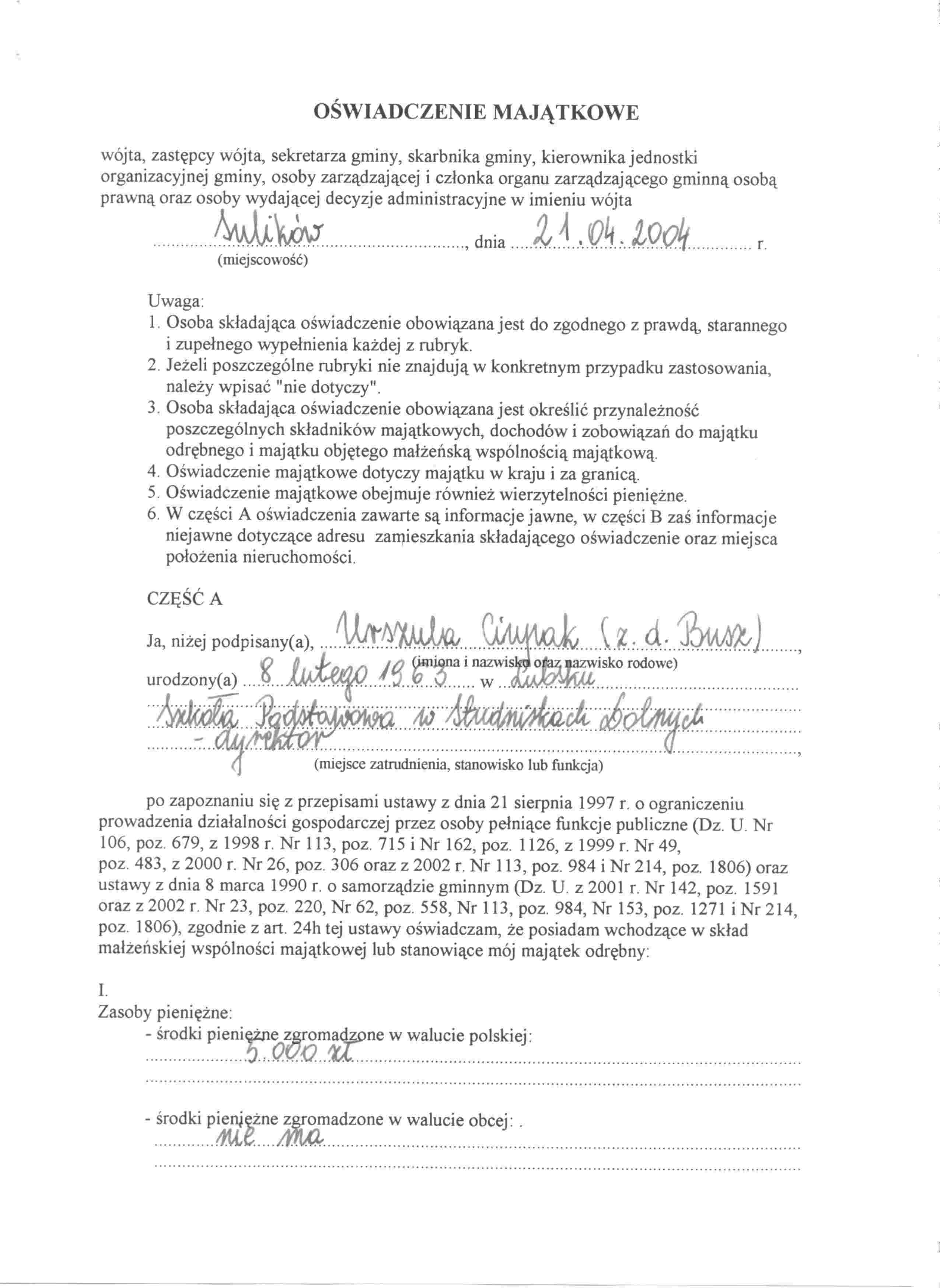 oświadczenie majątkowe - http://bip.sulikow.pl/?id=1253