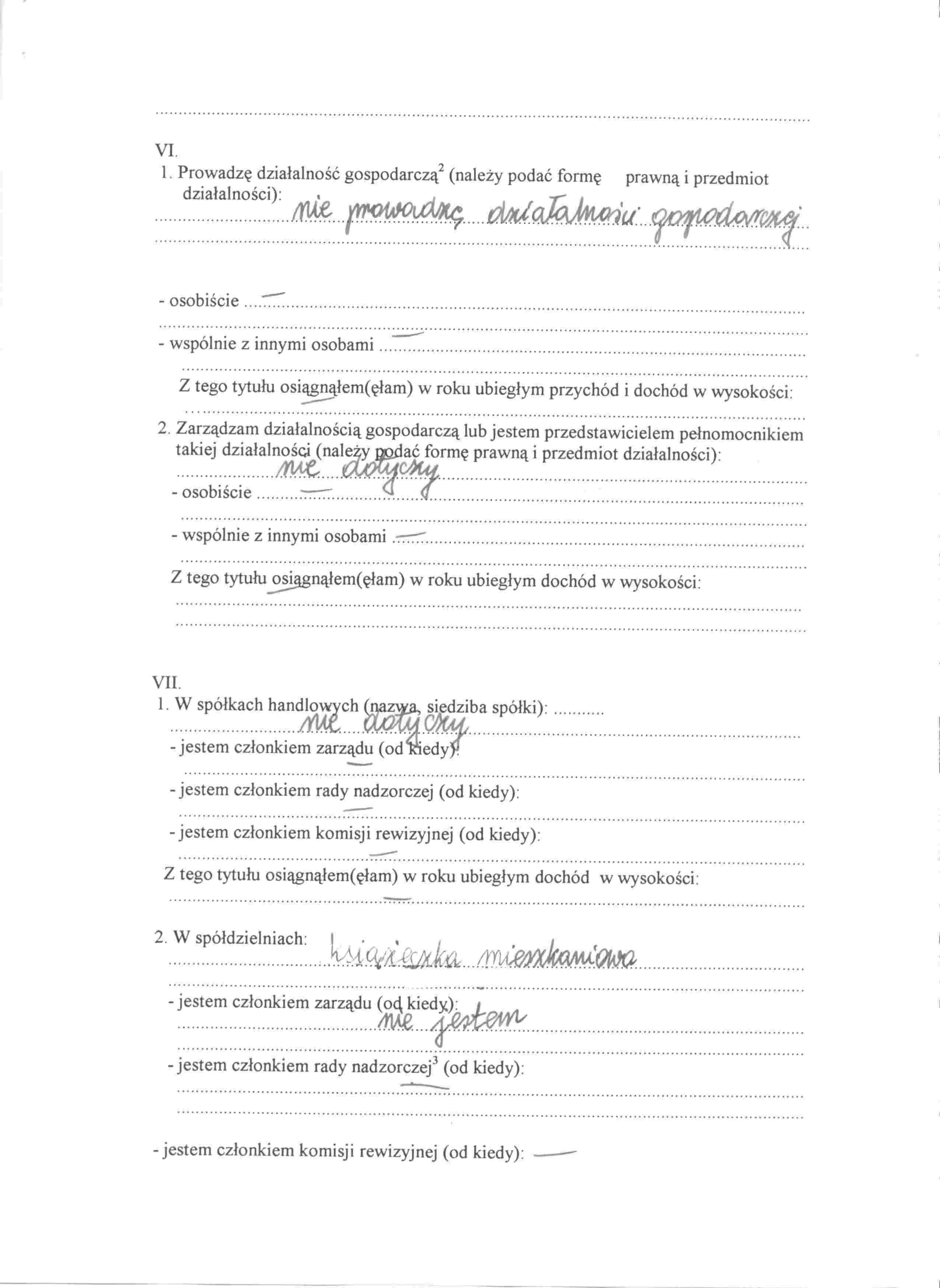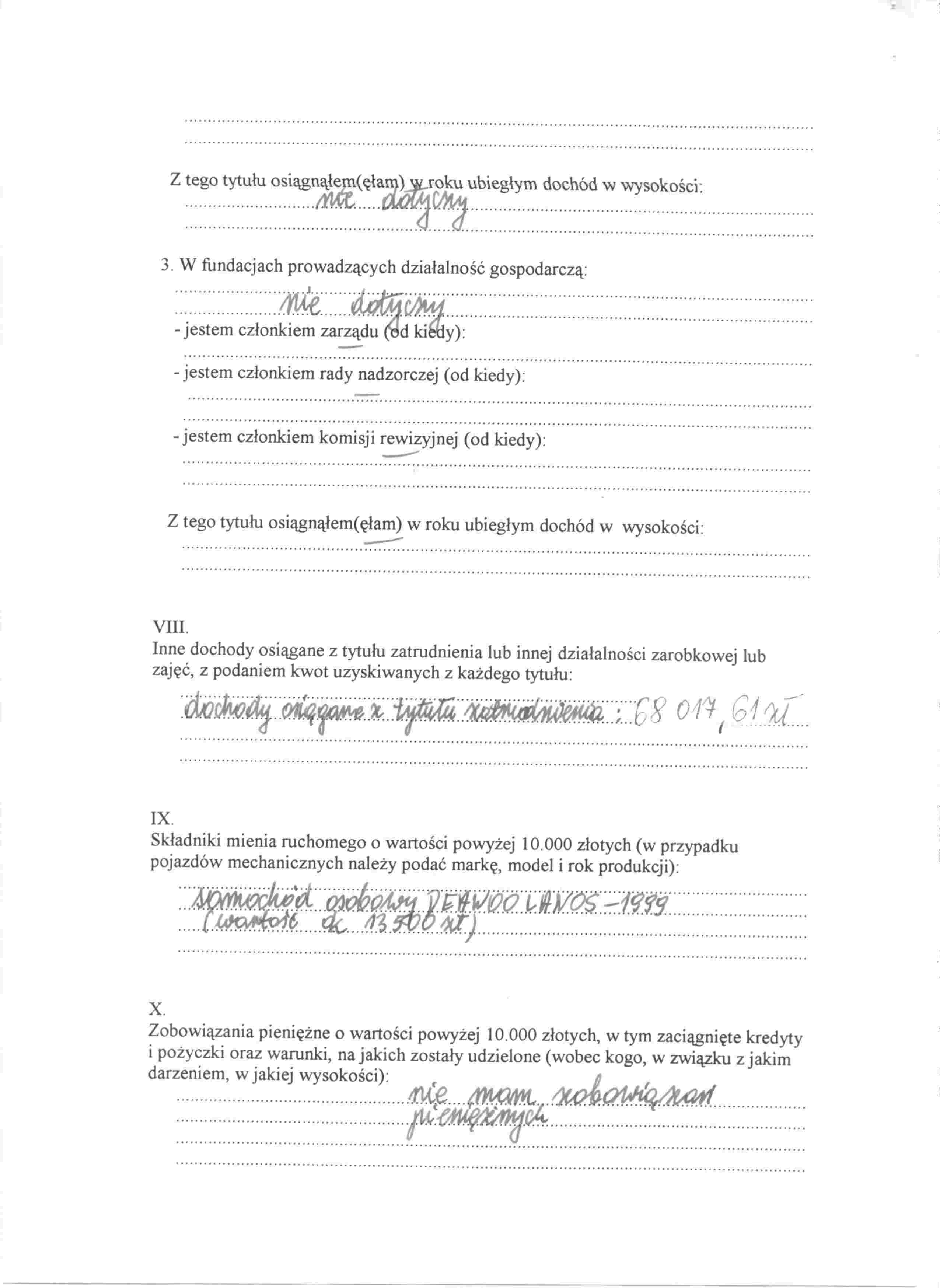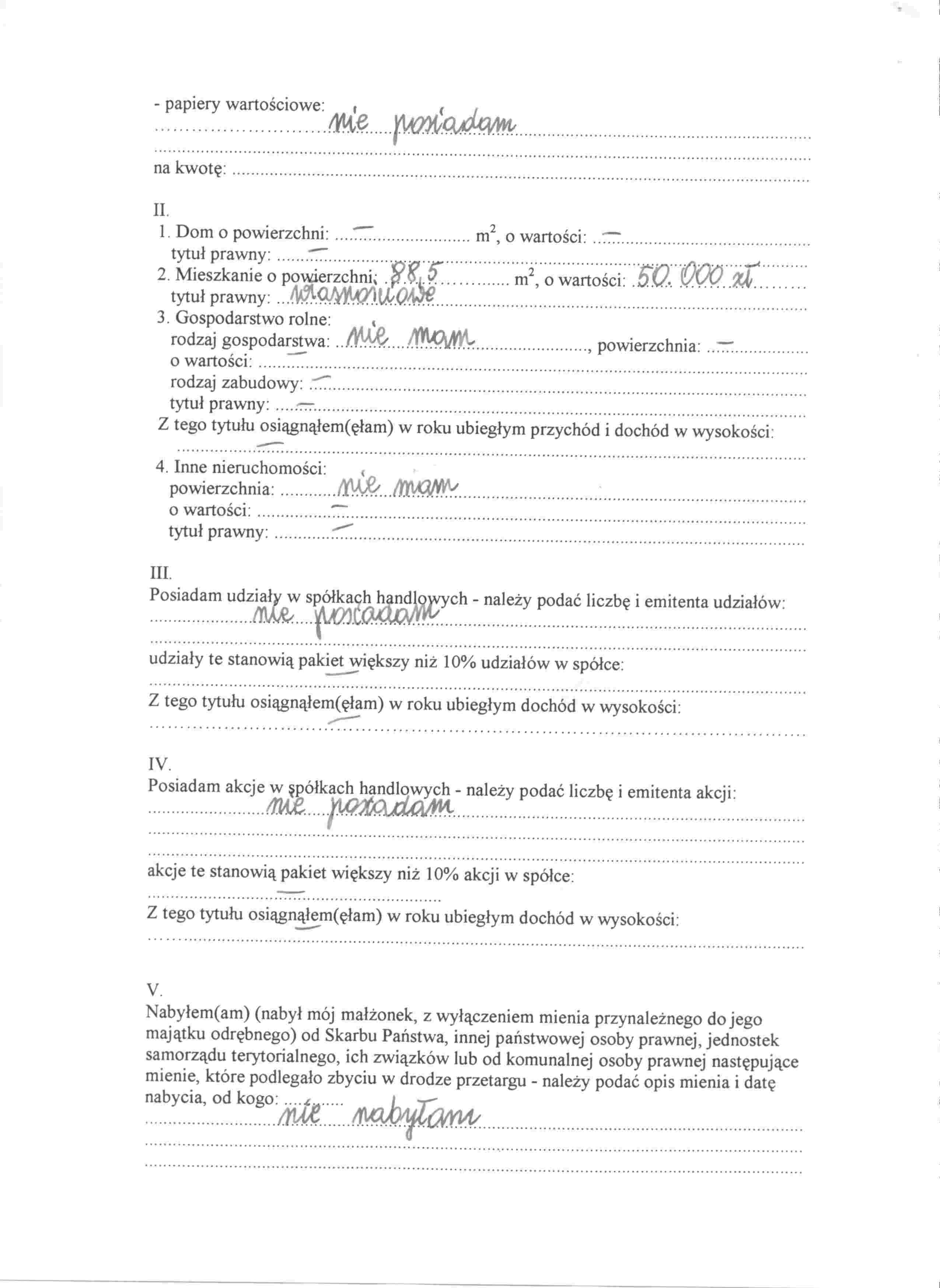 Oświadczenie majątkowe złożone w związku z pełnieniem funkcji dyrektora Szkoły Podstawowej w Studniskach Dolnbych - (załączniki od strony 1 do strony 4).