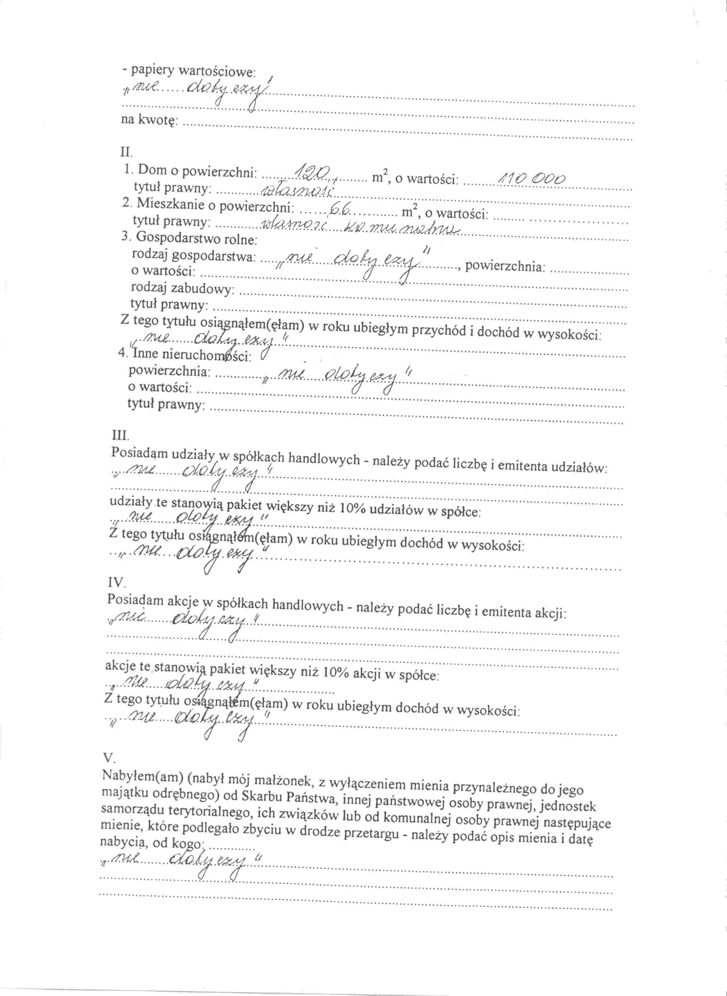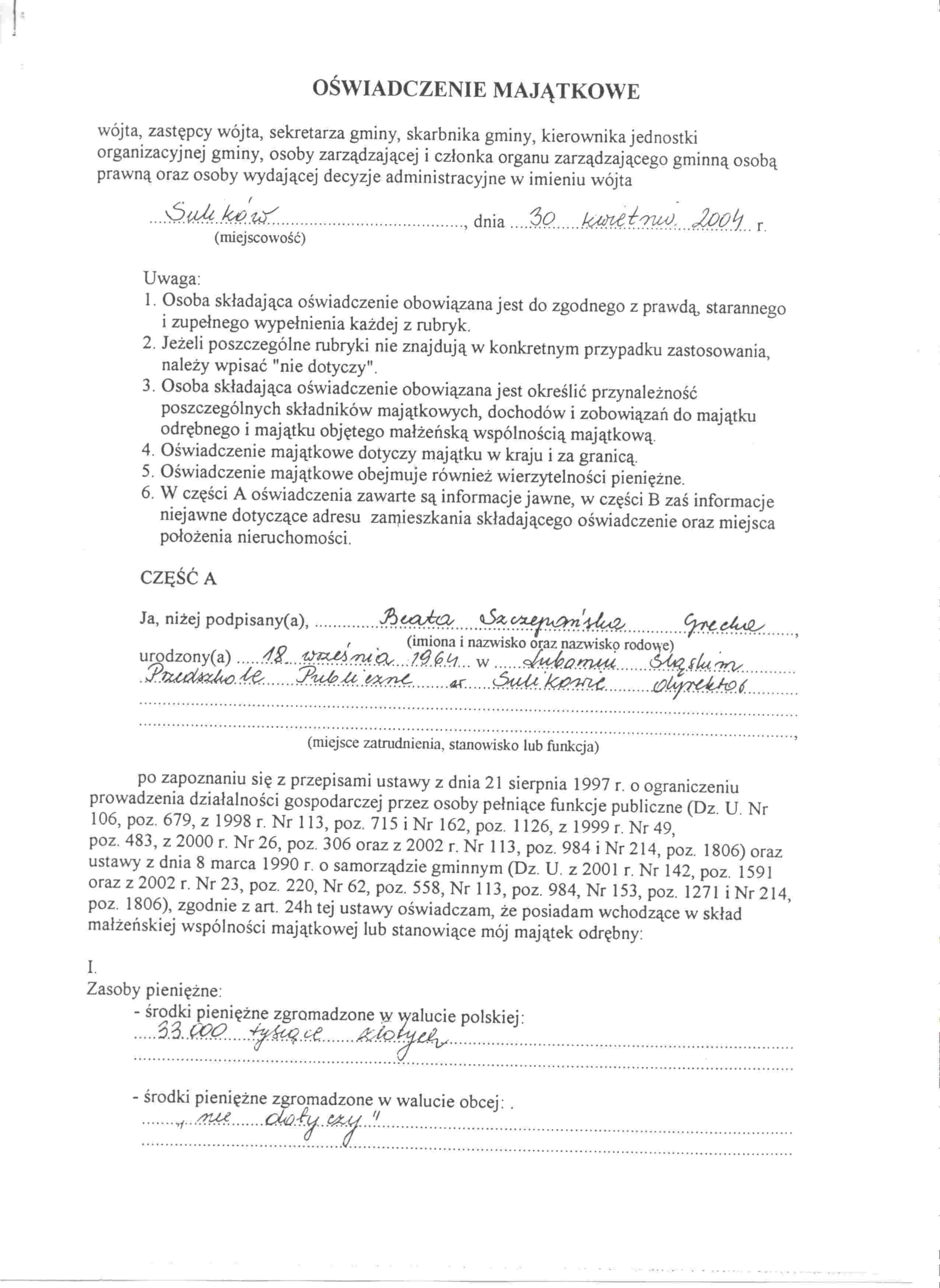 | Skrócony opis: | OŚWIADCZENIE MAJĄTKOWE DYREKTORA PRZEDSZKOLA PUBLICZNEGO W SULIKOWIE