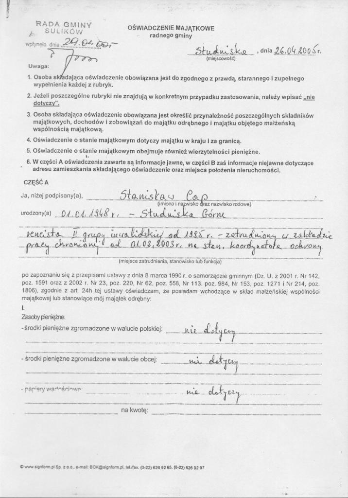 | Skrócony opis: | OŚWIADCZENIE MAJĄTKOWE RADNEGO GMINY SULIKÓW |