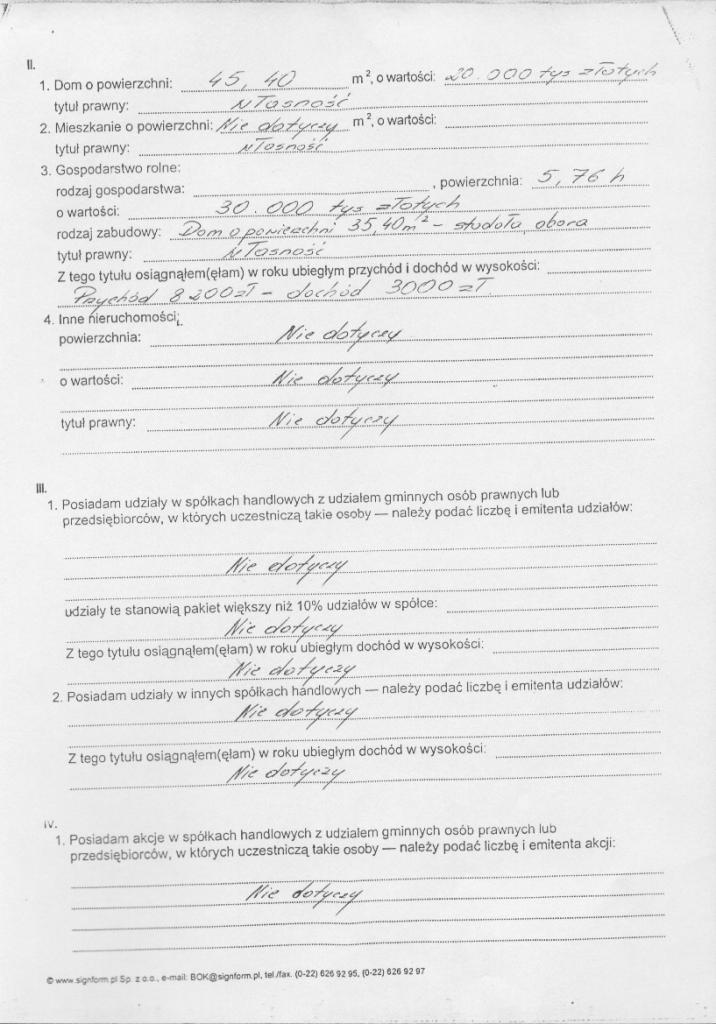 | Skrócony opis: | OŚWIADCZENIE MAJĄTKOWE RADNEGO GMINY SULIKÓW |