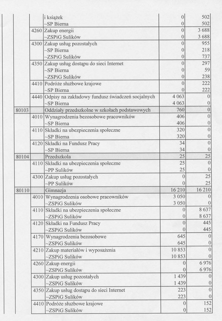 Pismo Zespołu Szkoły Podstawowej i Gimnazjum w Sulikowie z dnia 27.12.2005 r. w sprawie przeniesień miedzy paragrafami klasyfikacji budżetowej w dziale 801 i 854.