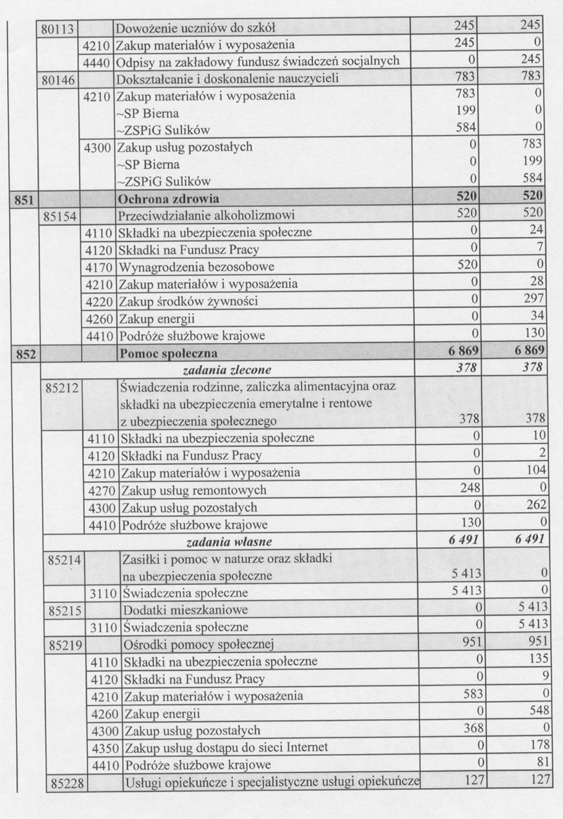Dokonano przeniesień między paragrafami i rozdziałami w ramach tego samego działu klasyfikacji budżetowej wynikających z toku wykonywania budżetu.