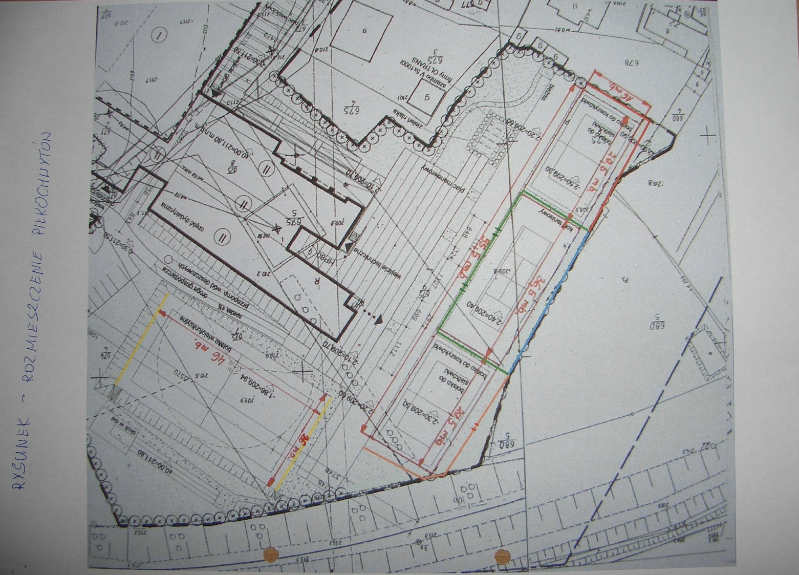 Miejsce wykonania montażu. Sposób wykonania robót mechaniczno-ręczny. W miejscu przewidzianym do montażu piłkochwytów w części ułożona jest nawierzchnia ze sztucznej trawy. Przy montażu należy zabezpieczyć teren, aby sztuczne nawierzchnie nie uległy uszkodzeniu, zabrudzeniu ani przedostaniu się wszelkich zanieczyszczeń takich jak ziemia z wykopów czy beton. Istnieje ograniczony dostęp do boisk zwłaszcza ciężkim sprzętem, ponieważ przed boiskami znajduje się (bieżnia) jak i boiska wykonane są ze sztucznej nawierzchni wylewanej ELTAN P N-35 gr. 4 cm. W miejscu przewidzianym do montażu piłkochwytów podczas wykonywania wykopów należy uwzględnić istniejące odwodnienie oraz przebieg rury odprowadzające wody deszczowe w obrębie kortu tenisowego. Sposób wykonania piłkochwytów powinien zapewniać możliwość bezpiecznego użytkowania oraz brak możliwości zablokowania piłek w siatce, linkach lub słupkach. Użyte materiały muszą posiadać atesty.