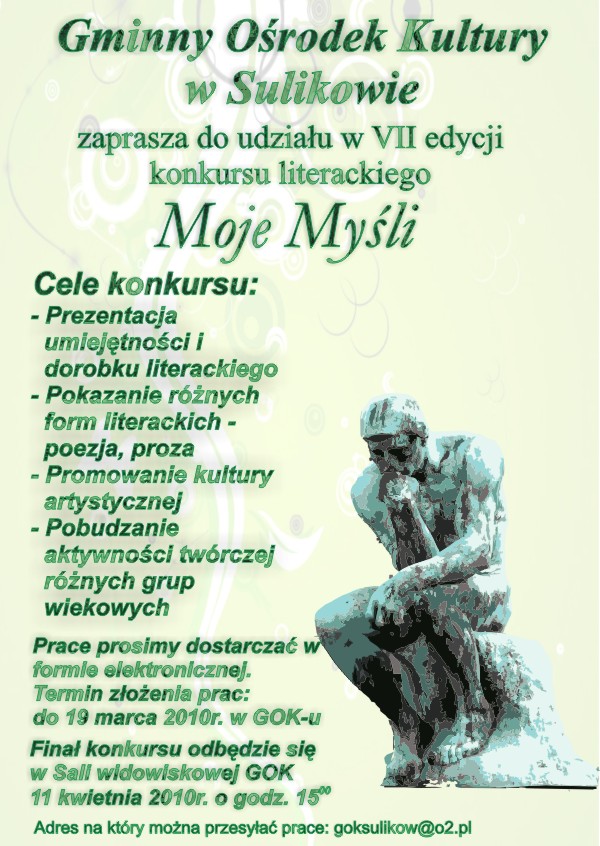| Nazwa dokumentu: | Moje Myśli - VII edycja | | Osoba, która wytworzyła informację: | Tomasz Warchoł | | Osoba, która odpowiada za treść: | Zbigniew Jaworski | | Osoba, która wprowadzała dane: | Warchoł Tomasz | | Data wytworzenia informacji: | 2010-01-11 10:27:38 | | Data udostępnienia informacji: | 2010-01-11 10:27:38 | | Data ostatniej aktualizacji: | 2010-01-11 10:34:28 |