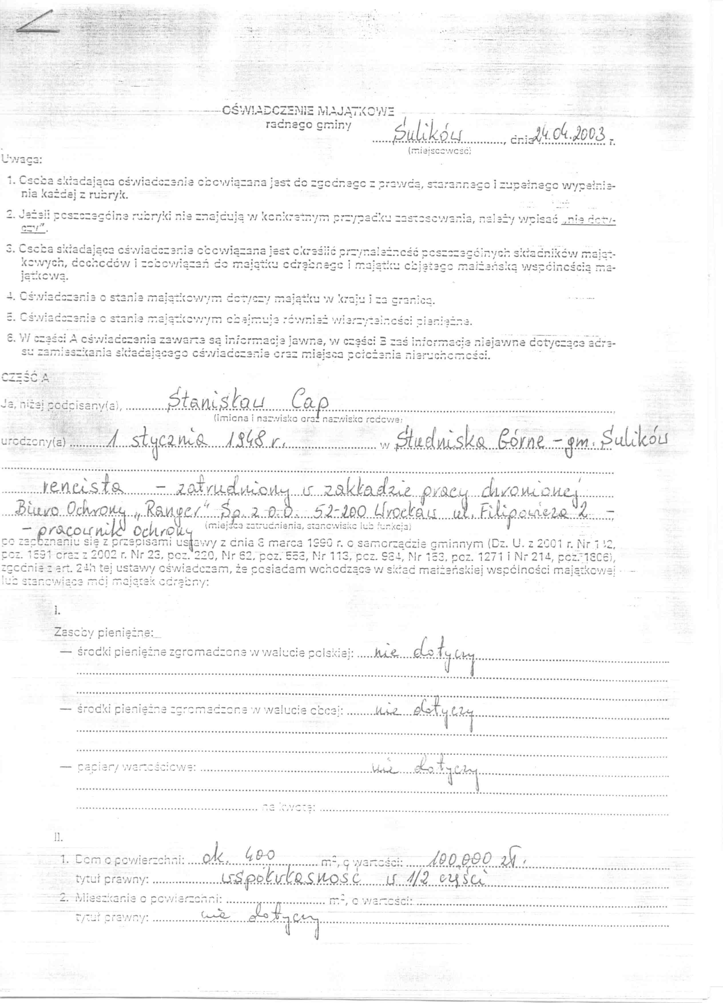 | Skrócony opis: | OŚWIADCZENIE MAJĄTKOWE RADNEGO GMINY SULIKÓW |