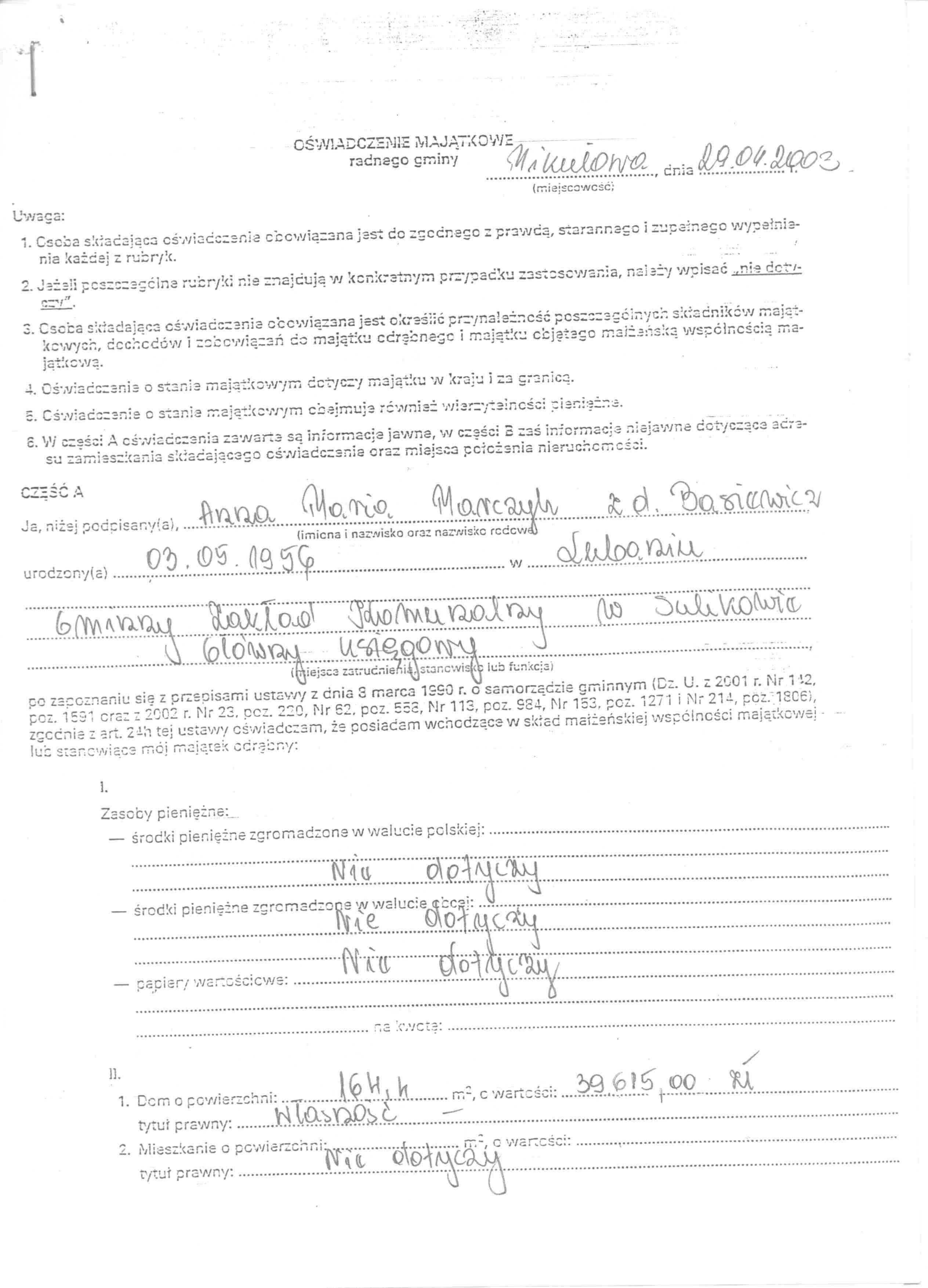 | Skrócony opis: | OŚWIADCZENIE MAJĄTKOWE RADNEJ GMINY SULIKÓW |