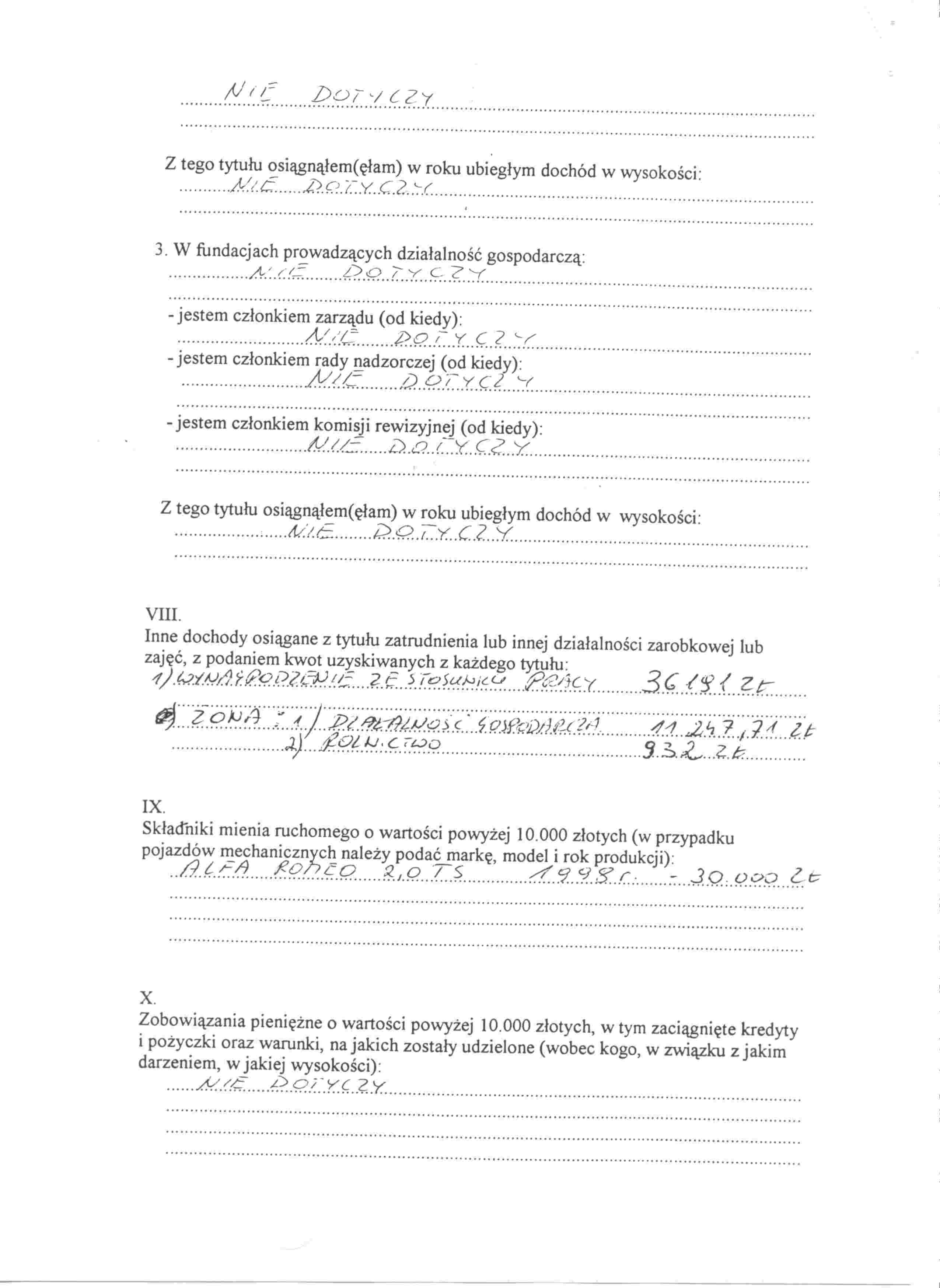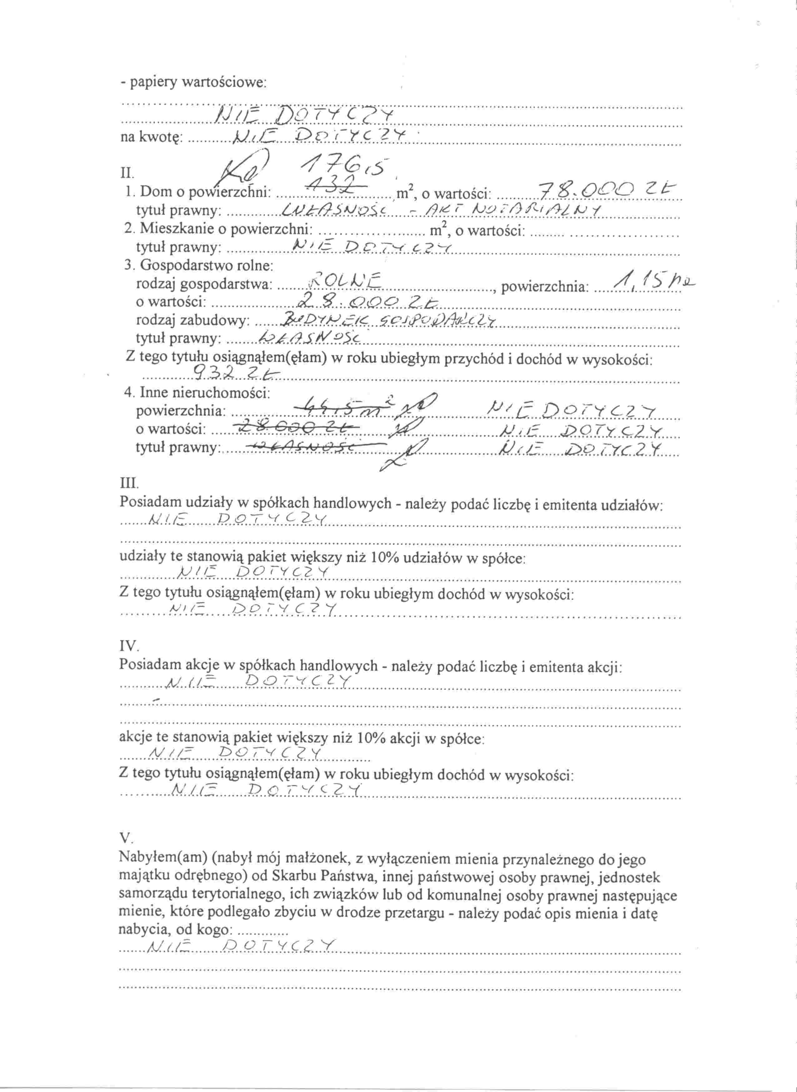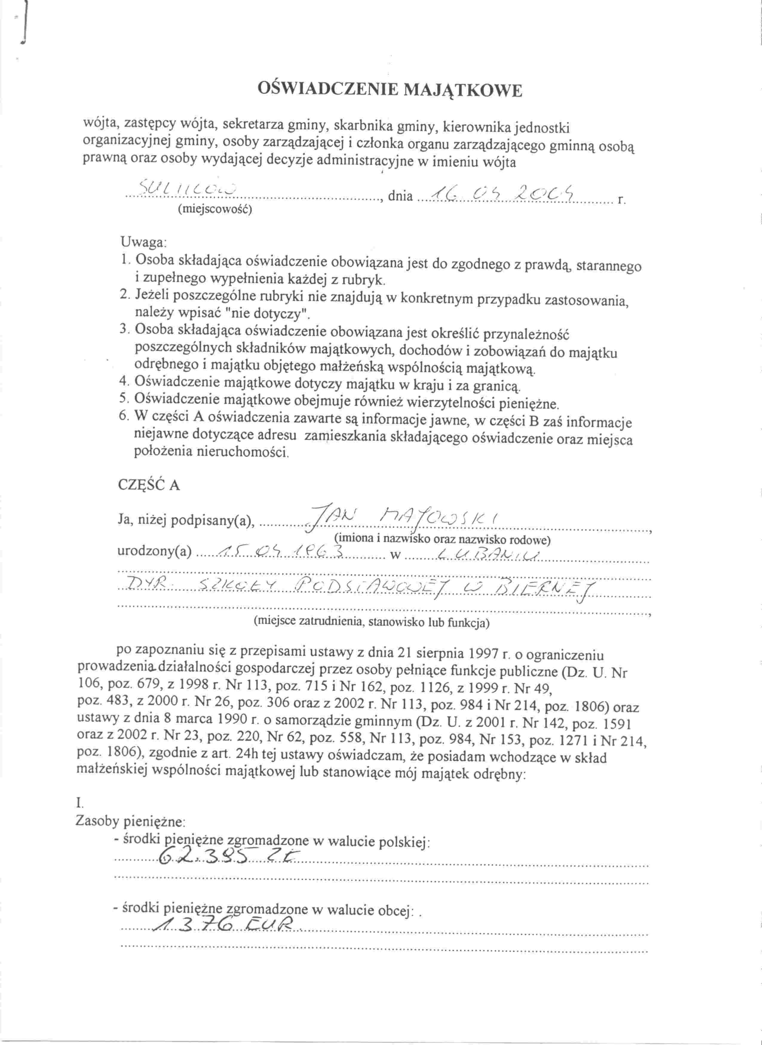 | Skrócony opis: | OŚWIADCZENIE MAJĄTKOWE DYREKTORA SZKOŁY PODSTAWOWEJ W BIERNEJ
